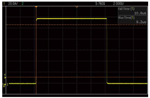 In addition to current slew rate, another key—yet often overlooked—parameter of electronic loads is the minimum current rise time. When the output current of the power management IC under test is relatively low and does not require the electronic load to operate at its full current range, the load may not reach its maximum slew rate. In such cases, it becomes essential to evaluate whether the electronic load can still deliver strong dynamic performance under light-load conditions.
